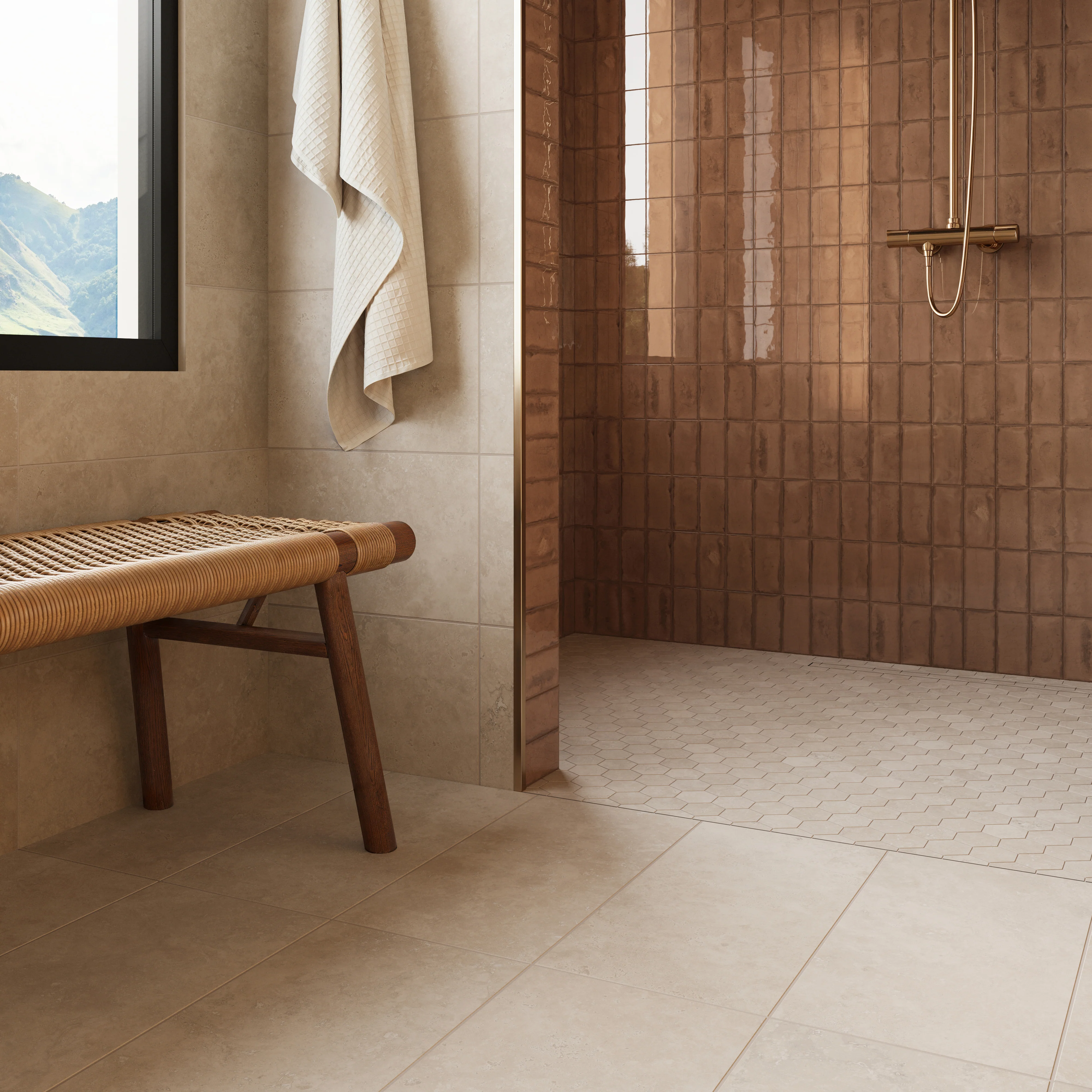 This natural palette suits bathroom floors, kitchen tiles and feature walls, creating a spa-like feel with organic texture and warmth.