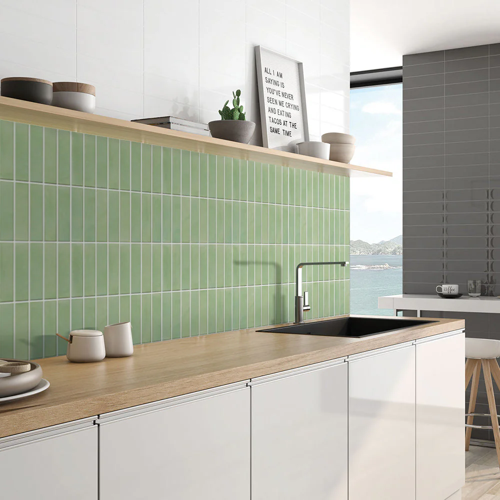 Trends for 2026 also include deeper hues like maroon and wine-inspired tiles paired with warm tones, adding depth and a luxe finish to kitchens and feature walls.
