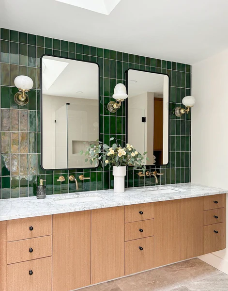 Patterned tiles or deep tones (like forest green or rich blues) work well in feature shower walls or kitchen splashbacks.